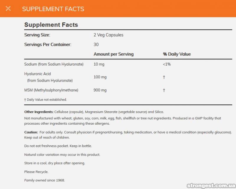 Коментарі до NOW Hyaluronic Acid 50 мг та MSM