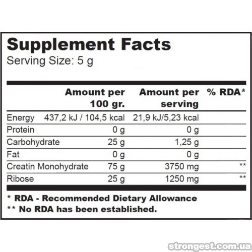 Crea-ribose BioTech USA – це найбільш ефективна форма креатину з усіх, що представлені сьогодні на ринку спортивного харчування. Високоякісний ультра-чистий креатин з транспортною системою з рибози дозволяють домогтися набагато більших результатів, ніж простий моногідрат креатину.