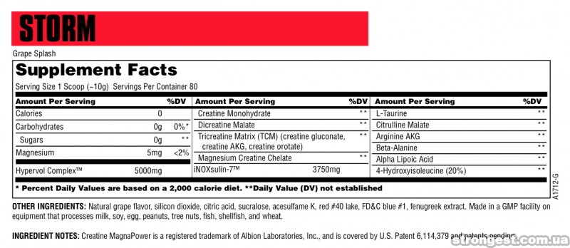Storm від Universal nutrition – це креатиновий комплекс нового покоління, який призначений для того, щоб викликати по-справжньому значний приріст сили й м'язової маси, а також прискорити відновлення після тренування. Universal Nutrition Storm ліквідує слабке місце всіх креатинових добавок — засвоєння. Його довершений склад, в якому включені 4 різні форми креатину й прогресивна система його доставки. Кожен міліграм комплексу працює всередині ваших м'язів на повну потужність!
