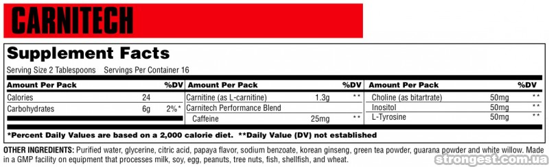 Це означає, що кожен компонент у складі Carnitech Universal Nutrition не тільки відмінно працює сам по собі, але й підсилює дію інших речовин.