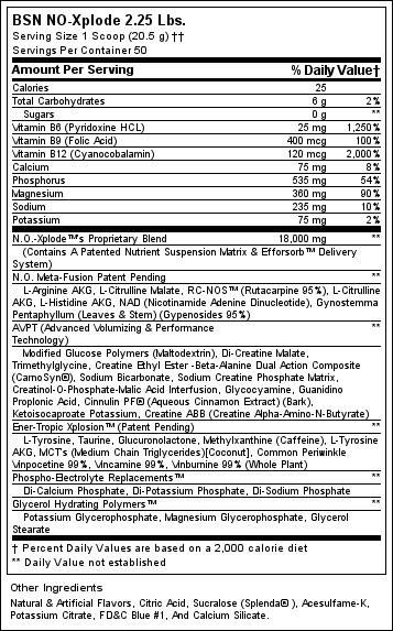 BSN N.O. Explode 2.0 — це поліпшена версія відомого передтренувального комплексу. Компанія BSN ніколи не зупиняється на досягнутому, навіть якщо результати перевершують всі очікування, як це було з BSN NO Explode. Завдяки вдосконаленій формулі ви отримаєте ще більше сили, енергії, пампінга й драйву!
