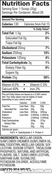 Dymatize Elite Casein - це казеїн найвищого ступеня очищення і преміальної якості. Його амінокислотний склад ідеально підходить для будівництва мускулатури, адже крім того, що там присутні всі замінні і незамінні амінокислоти Dymatize Elite Casein містить 10 грам глютамина і ВСАА, які є вкрай важливими складовими білкового синтезу. Все це завершує практично стовідсоткове засвоєння, яке досягається завдяки включенню спеціальної ферментної матриці Zytrix.