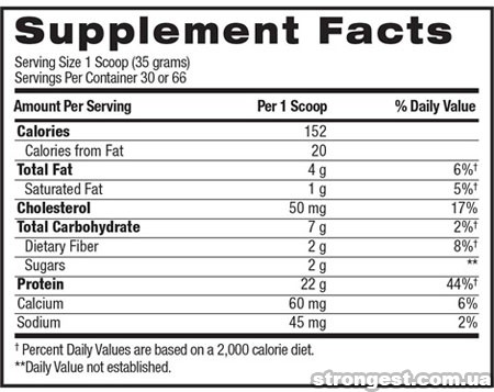 У порції Total protein міститься 22 грама чистого протеїну; 88 з 110 ккал на порцію припадає на протеїн. Тепер Ви можете бути впевнені, що додаєте тільки м'язову масу.