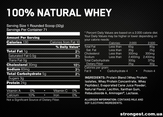 100% Gold Standart Natural Whey - це чистісінький ізолят сироваткового протеїну. Ізолят є максимально ефективною білковою формулою для росту м'язів. Саме тому тільки даний тип білка присутній у складі продукту. Кожна порція містить 24 грами білка преміального ступеня очищення. Це означає, що тут немає жирів, цукру та іншого сміття, яке нарощує тільки зайві кілограми. 100% Gold Standart Natural Whey - це чиста м'язова маса та ніякого жиру! Компанія Optimum Nutrition задала найвищий стандарт якості, випустивши даний продукт на ринок.