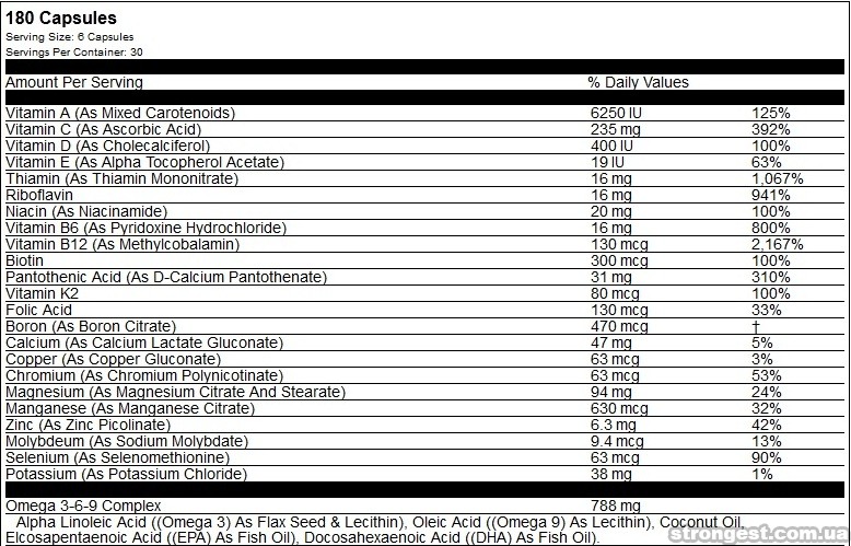 MusclePharm Armor-V можна було б назвати просто вітамінно-мінеральною формулою, але це було б вкрай неточний опис настільки багатоманітного продукту. Крім того, що в його складі присутня ударна доза вітамінів та мінералів, тут також присутні натуральні оздоровчі компоненти (витяжки з овочів та фруктів, екстракти трав, антиоксиданти та багато іншого). Усе разом це створює найбільш повноцінний комплекс для підтримки організму з усіх можливих. І це не порожні слова, короткий лікнеп складу це переконливо доводить.