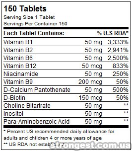 super vitamin b complex ultimate nutrition – це ефективний комплекс, що містить вітаміни групи В. Дані вітаміни дуже важливі для нормальної життєдіяльності організму. Їхнє основне завдання зводиться до участі в реакціях енергозабезпечення й захисту організму від стресу. Також вони вкрай важливі для здоров'я шкіри, волосся та нігтів.